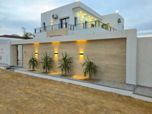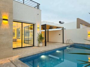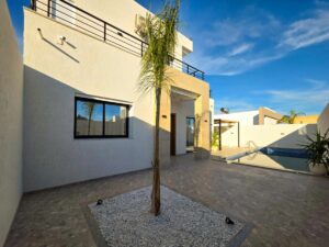 A VENDRE à Djerba pas loin de l’école Victor Hugo – Beni Bendou – commune Houmt Souk – Villa Haut Standing 240 m² + Garage – Sur 400 m² Découvrez une magnifique villa moderne et élégante, offrant des prestations haut de gamme. Située en Zone Urbaine, dans un lotissement entièrement viabilisé, elle garantit confort, sécurité et qualité de vie