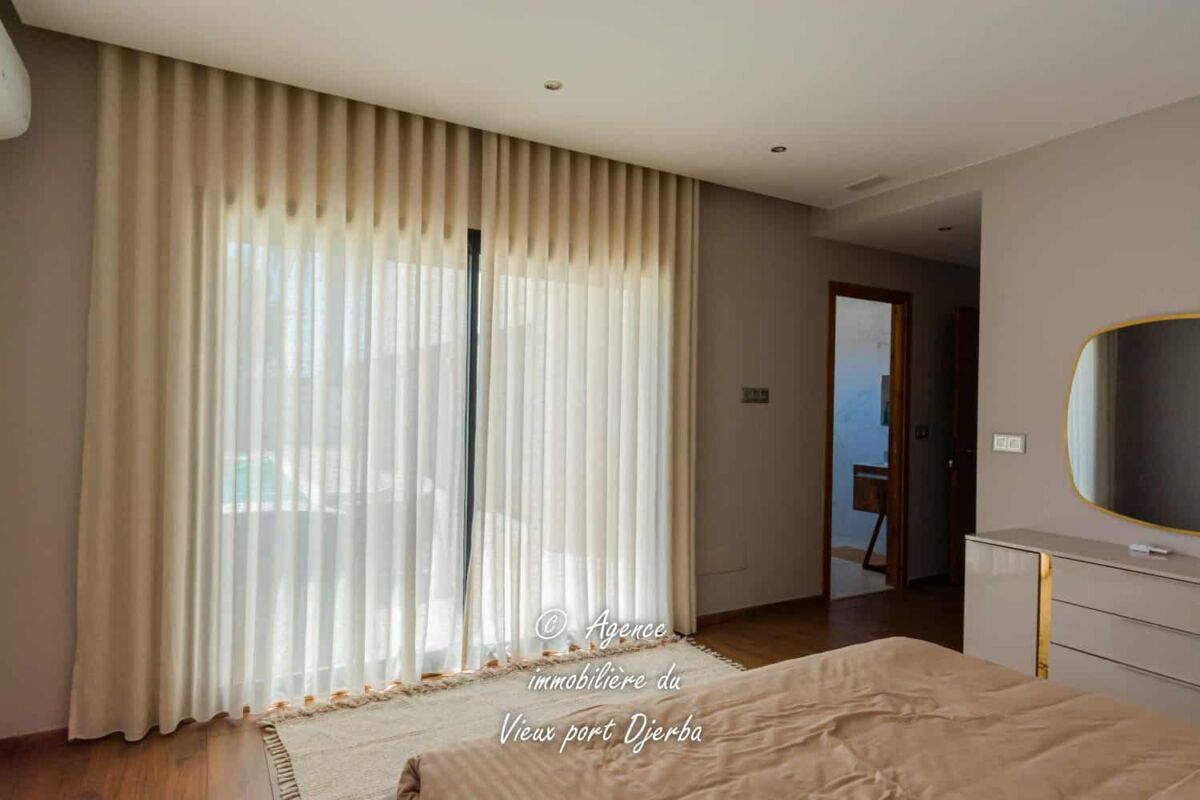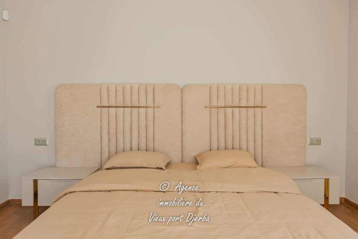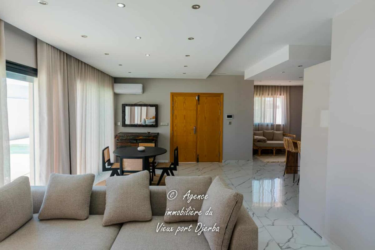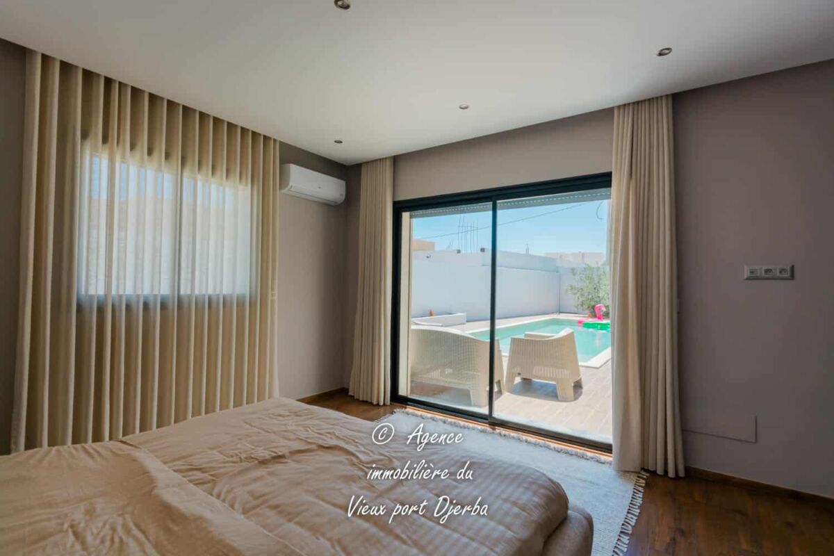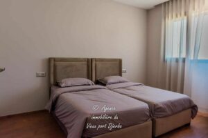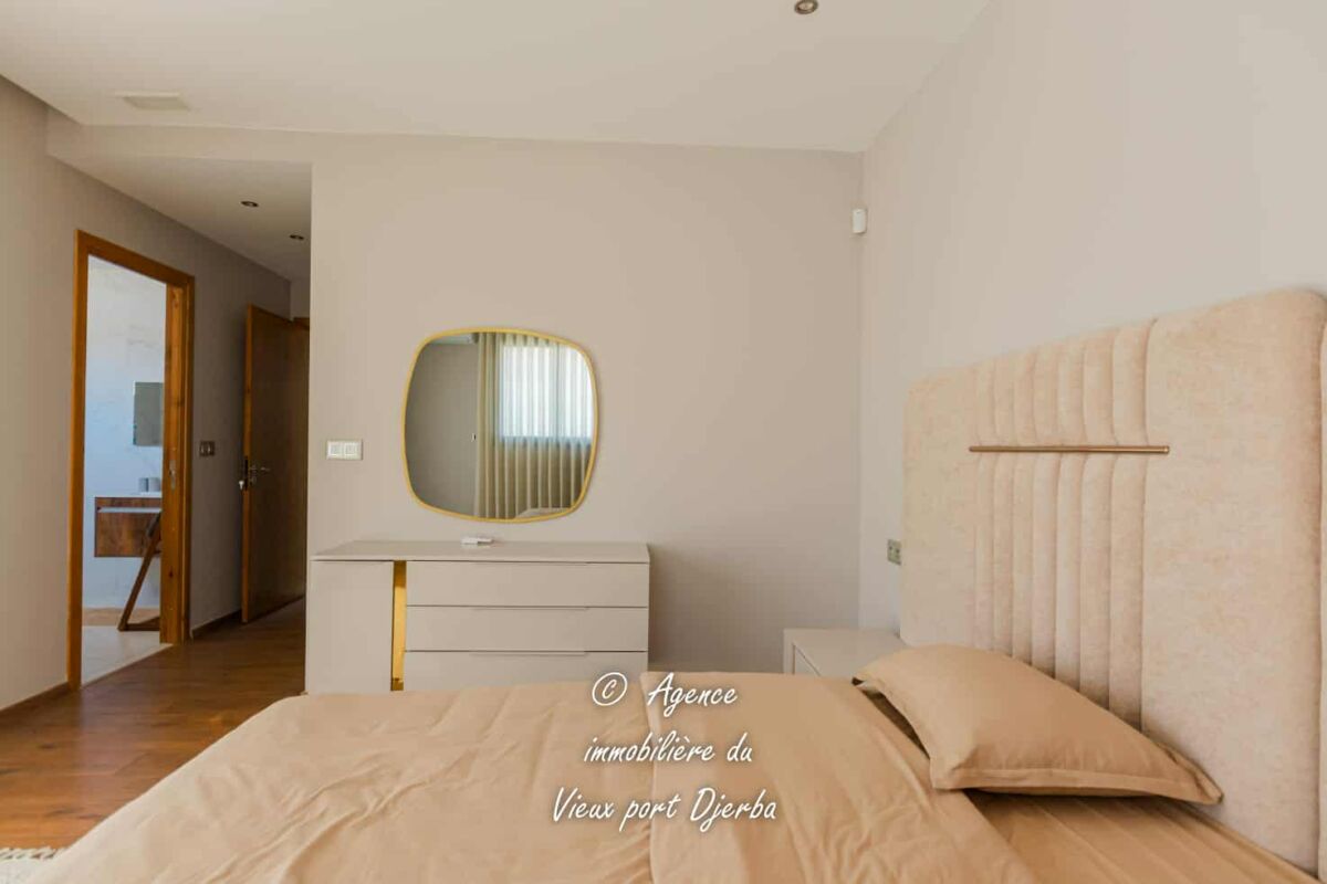 L’agence du Vieux Port Djerba met à la vente une belle villa plain pied avec piscine et un studio indépendant , situés dans le quartier calme et agréable de Houmt Souk et très proche de la route goudronnée reliant le quartier de Fatou et Ghizen.