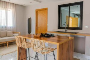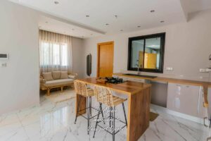 - Villa plain pied : deux suites parentales avec wc – deux chambres – salon spacieux – séjour – cuisine bien equipée – salle d’eau- patio