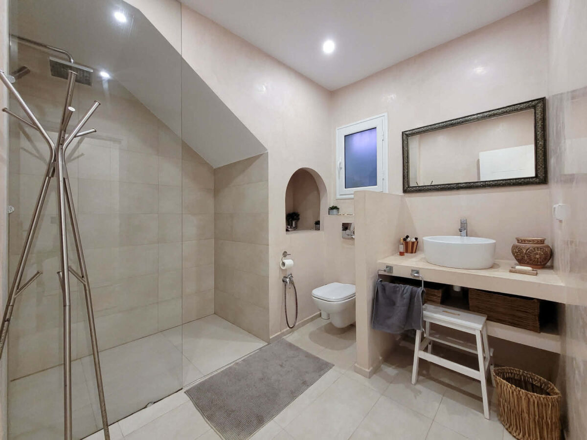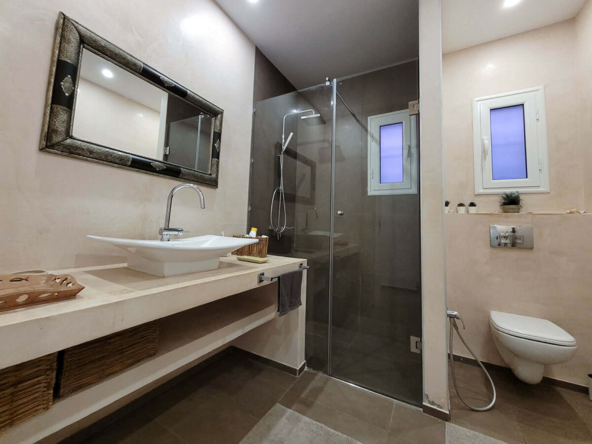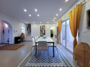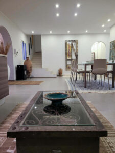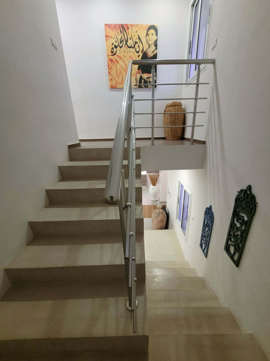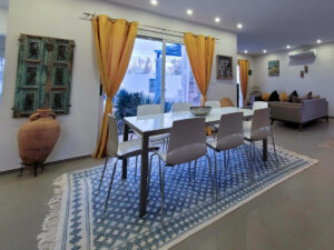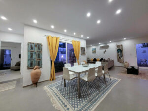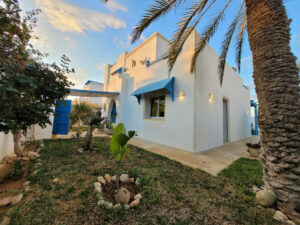 À Vendre à Houmt Souk – Djerba – Charmante Villa avec Studio et Grande Terrasse, Emplacement Calme et Résidentiel Surface Terrain : 496 m² Surface Bâtie : – Villa : 250 m² – Studio : 50 m² Caractéristiques Générales : – Titre bleu – Chauffe-eau solaire – Citerne d’eau douce – Double cloisons pour une isolation thermique et phonique supérieure – Fenêtres en aluminium Disposition Intérieure : Rez-de-chaussée : – Grand salon lumineux et spacieux, idéal pour recevoir – Chambre d’ami confortable – Grande cuisine bien équipée avec beaucoup de rangement – Salle d’eau pratique pour les invités Étage 1er niveau : – Suite parentale avec salle de bain privée, offrant intimité et confort Deuxième neveu : – Deux chambres spacieuses avec beaucoup de lumière naturelle – Salle d’eau – Deux terrasses Extérieur : – Garage sécurisé pour une voiture – Deux grandes terrasses extérieures pour se détendre ou recevoir – Un beau studio indépendant de 50 m², idéal pour les invités ou à louer Autres Atouts : Cette villa moderne se distingue par ses matériaux de qualité et son agencement intelligent offrant confort et espace. Située dans un quartier calme et résidentiel, elle conviendra parfaitement à une famille ou à ceux qui recherchent une maison spacieuse avec des prestations haut de gamme.